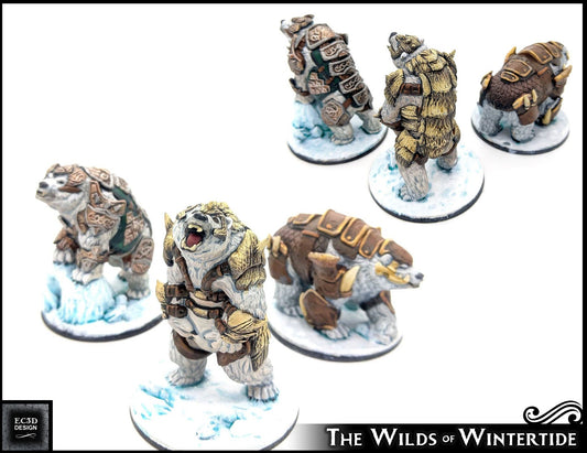 Set of 3 Battle Bears - 28mm Scale Miniatures for Tabletop RPGs